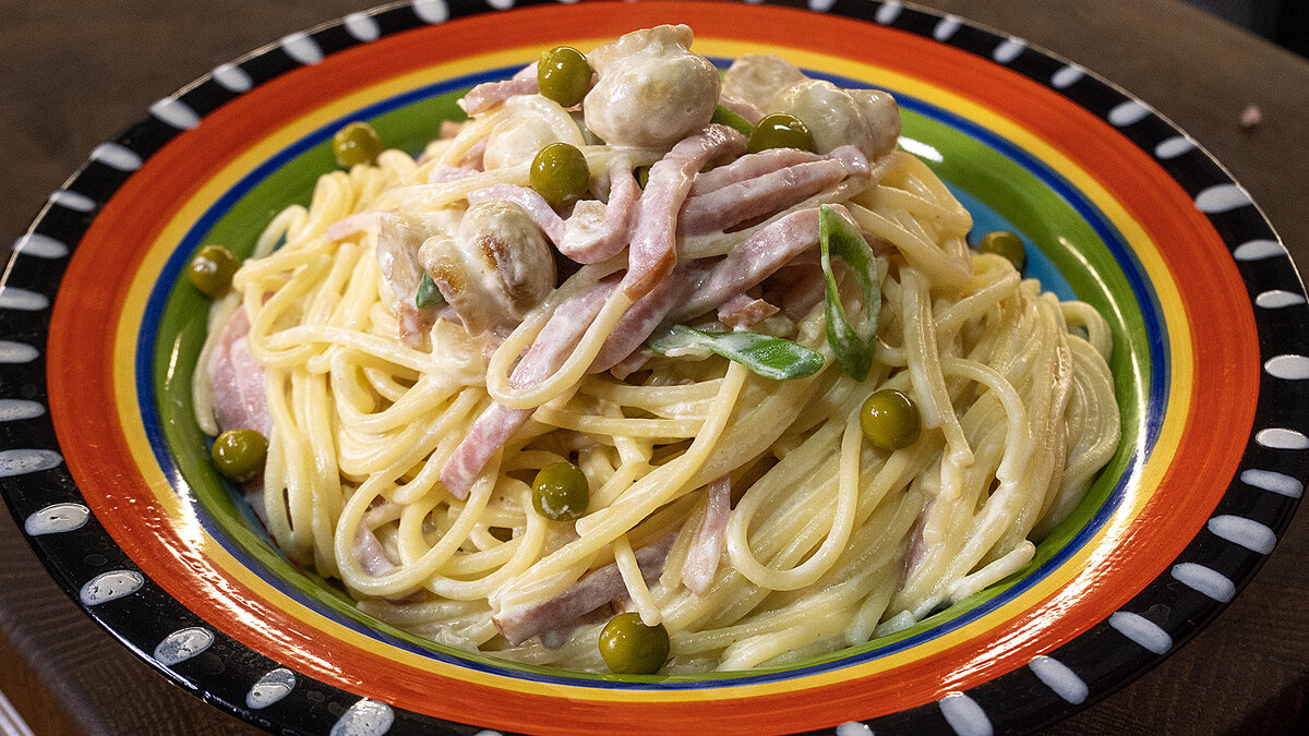 Макароны с ветчиной и сыром: ужин за 10 минут — нежное блюдо с грибами и сливочным соусом